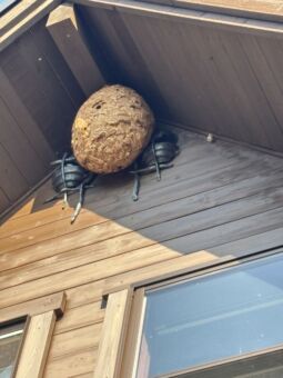 一般のご家庭のベランダに、黄色スズメバチの巣が!かなり成長していて⚠️危険な状態に。駆除依頼!!